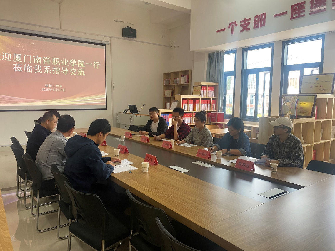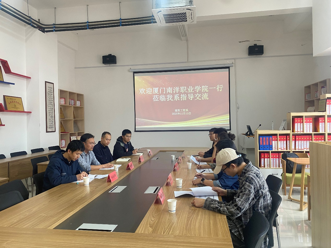 2025年11月13日,厦门南洋职业学院建筑工程学院一行到访建筑工程系,就专业建设与实践教学开展调研交流。调研组先后参观了智能建造创新实践基地、瓷砖贴面省级实训基地、建筑消防技术实训室等场所,深入了解我系在产教融合与实训体系建设方面的做法与成效。