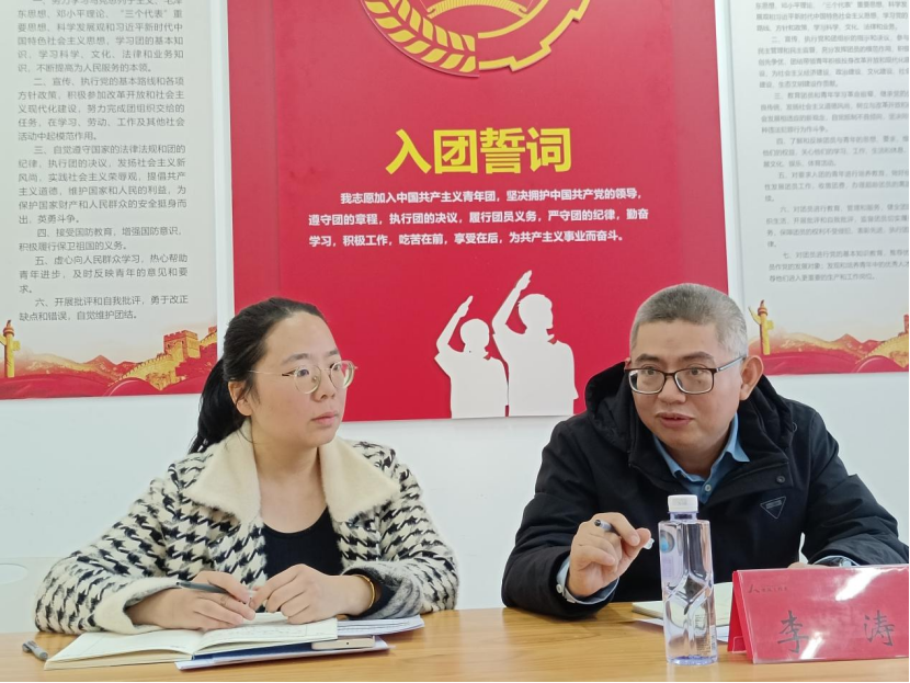 会上,支部书记李林霞全面回顾2025年党建工作成效,从政治引领、组织生活、作风建设等方面总结经验亮点,客观分析支部建设中存在的不足,如党员教育管理的精细化、差异化水平不高;党建品牌特色不够鲜明等。李涛主席肯定了学生支部今年的工作成效,并围绕下一年度计划展开深入交流,就支部活动创新、党建与专业实践融合等提出建议。针对2026年工作计划,大家一致明确方向:深化“党建+专业”融合模式,提升组织凝聚力和服务效能。