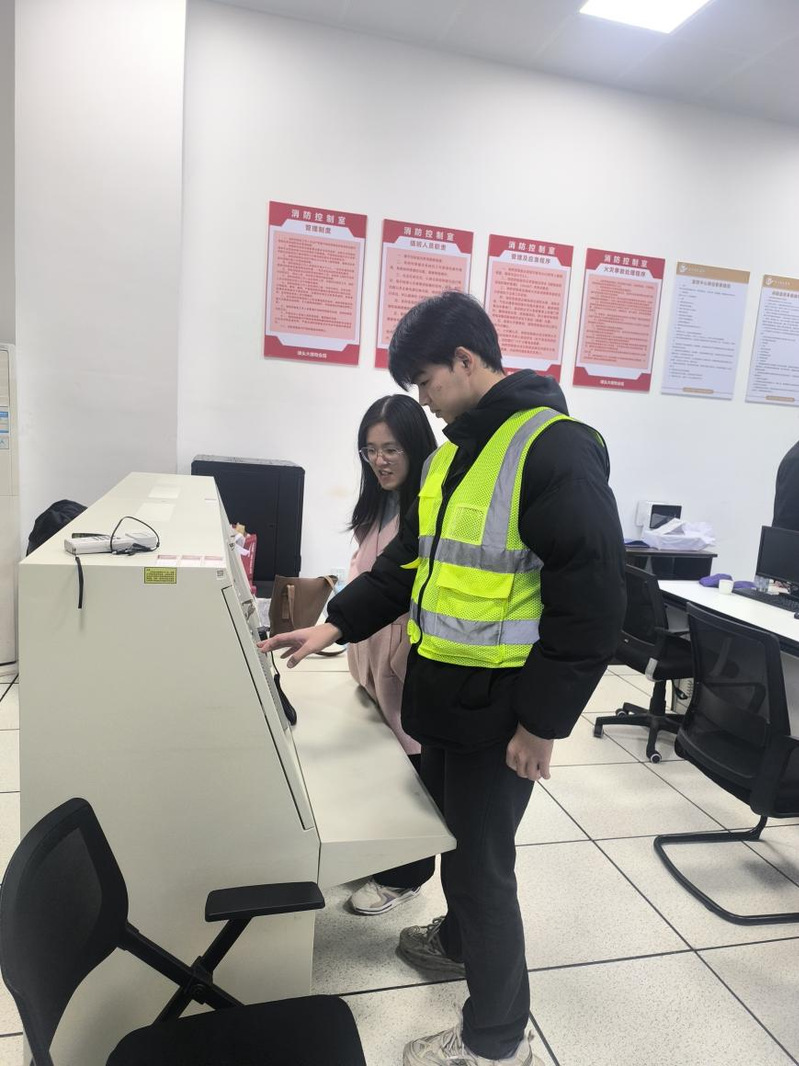 2026年1月7日,建筑系教师刘晓霞前往福建和天源消防安全科技有限公司检查建筑消防技术专业学生吴伟栋同学的岗位实习情况。