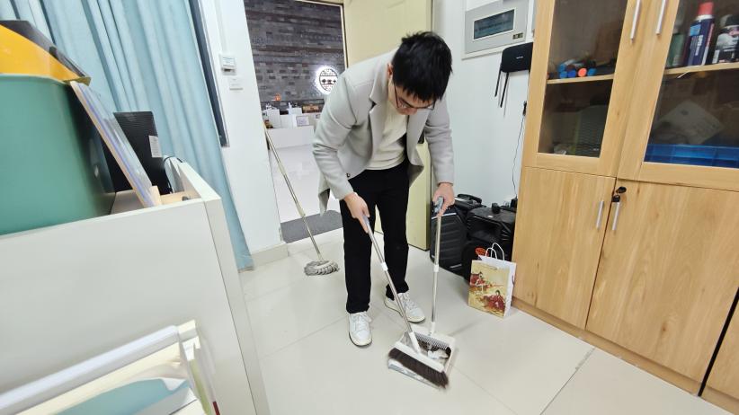 活动现场,全体教职工志愿者热情饱满、分工协作、干劲十足,充分展现了建筑工程系教职工务实担当、团结奋进的良好精神风貌。志愿者们分为两组协同推进:一组聚焦卫生整治,拿起清扫工具,对办公桌椅、实训设备、墙面和地面进行全面清扫,细致清理角落杂物与卫生死角,全力营造整洁、规范的办公实训环境;另一组专注安全排查,重点检查消防器材完好有效性、消防通道畅通情况,细致排查水电开关、线路是否存在老化破损等隐患,核查实训设备封存、门窗锁具完好等情况,对排查发现的问题逐一登记造册、建立隐患台账,明确整改责任人、整改措施及整改时限,实行闭环管理,确保各类安全隐患及时清零。