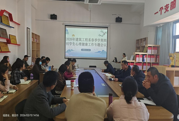 为深入贯彻立德树人根本任务,筑牢校园心理安全防线,助力学生以良好心态迎接新学期,3月10日,建筑工程系于建筑楼南401召开2026年春季学期期初学生心理健康工作专题部署会。建筑工程系辅导员、各班班主任及系部心理联络员参会,会议由建筑工程系党总支书记徐剑华主持。