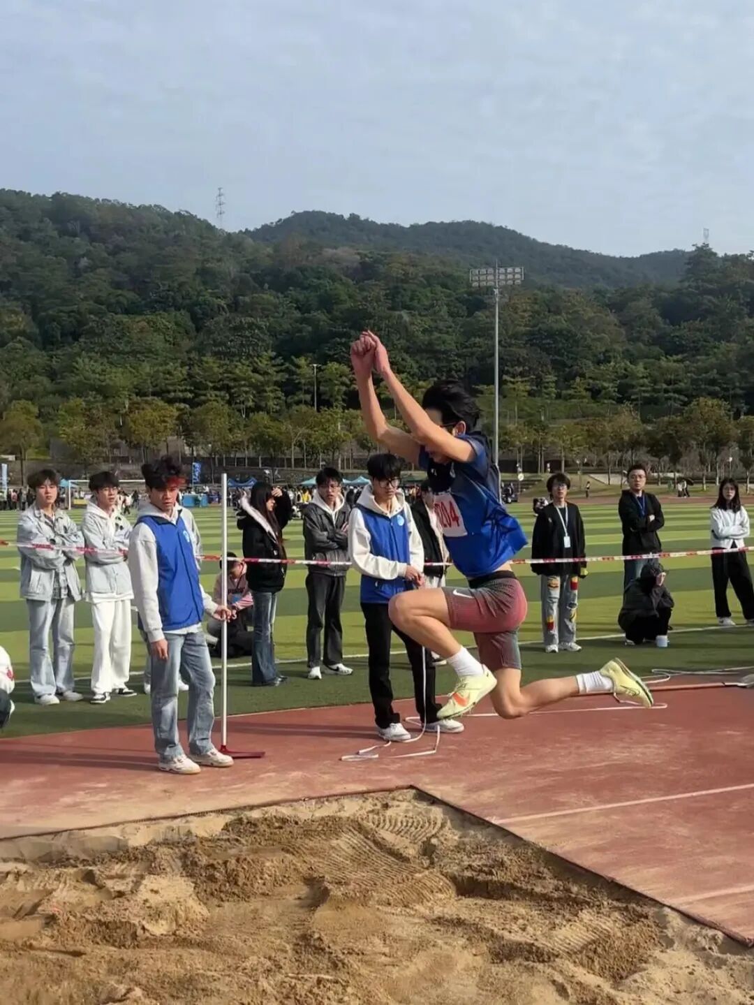当天的三级跳远赛场竞争激烈,来自各系部的参赛选手实力不俗。比赛中,祝德超沉着冷静,迅速进入最佳状态。助跑阶段,他步伐铿锵、节奏精准,每一步都凝聚着平日的训练积累;起跳瞬间,身体舒展如箭,在空中划出优美弧线,稳稳完成跨步、跳跃、落地一系列动作,落点精准有力。经过多轮紧张角逐,他凭借出色的爆发力、协调力与落点控制,最终以优异成绩脱颖而出,摘得亚军奖牌。