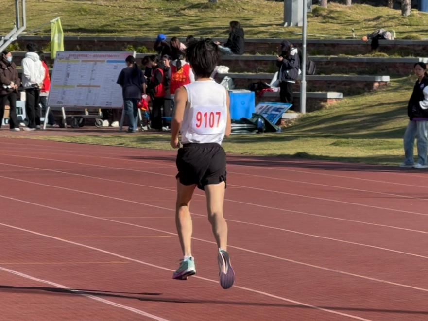 11月21日校运会田径赛场,建筑工程系建筑消防技术2501班的胡俊杰在男子甲组1500米项目中一骑绝尘,最终以领先优势冲线夺冠,为班级和系部拿下这枚亮眼的金牌,现场响起一片喝彩。