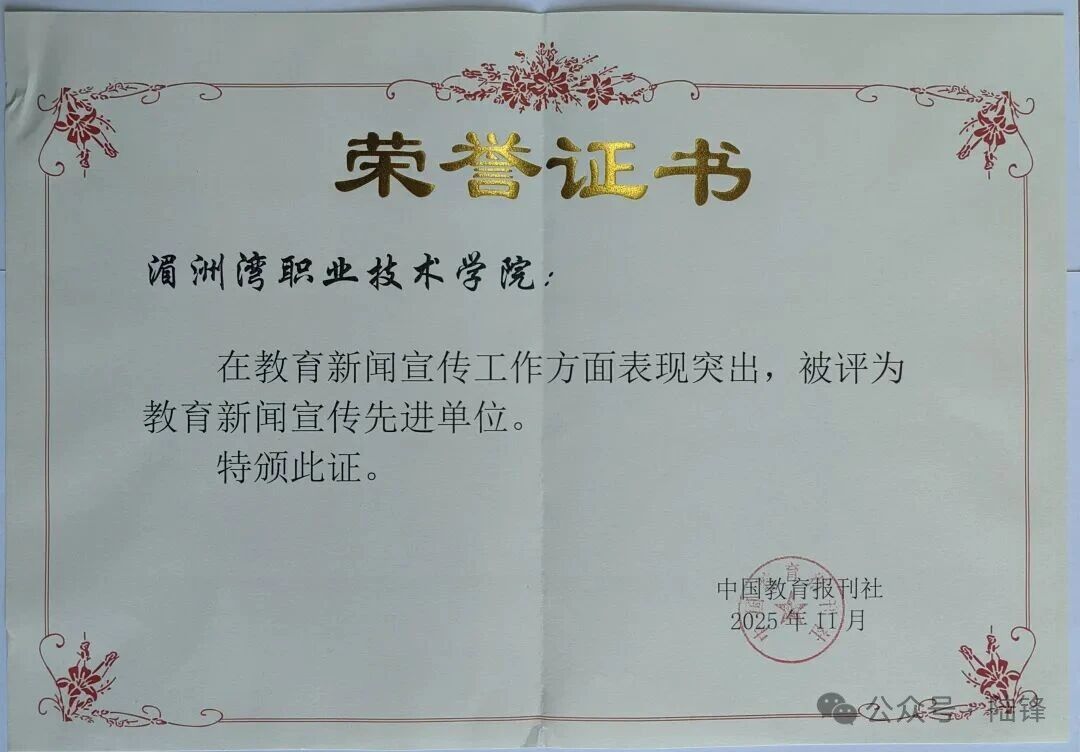 日前,中国教育报刊社授予湄洲湾职业技术学院“教育新闻宣传先进单位”荣誉称号,充分肯定了学院今年在教育新闻传播工作中的创新实践与突出成效。学院2024年首次获此殊荣。学院党委宣传部一名工作人员获评“优秀特约通讯员”。