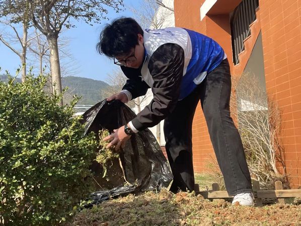 3月24日,在湄洲湾职业技术学院“一站式”学生社区里,一场别开生面的劳动教育课正悄然展开。建筑工程系的同学们脱下外套、挽起袖子,与物业绿化师傅们一起,在泥土芬芳中种下春天。